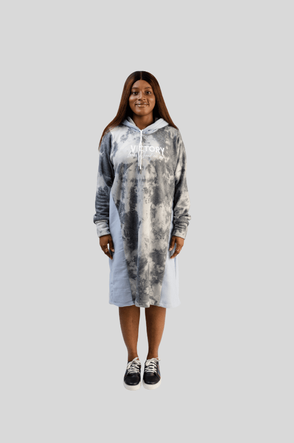 Made from premium breathable cotton fleece, our hoodie dress gives you the warmth of a sweatshirt with the freedom and elegance of a modest dress silhouette. The statement print — Victory Looks Good on Me — isn’t just fashion, it’s a declaration. Whether styled with sneakers, boots, or slides, it’s your go-to outfit for errands, meetups, worship, or travel.